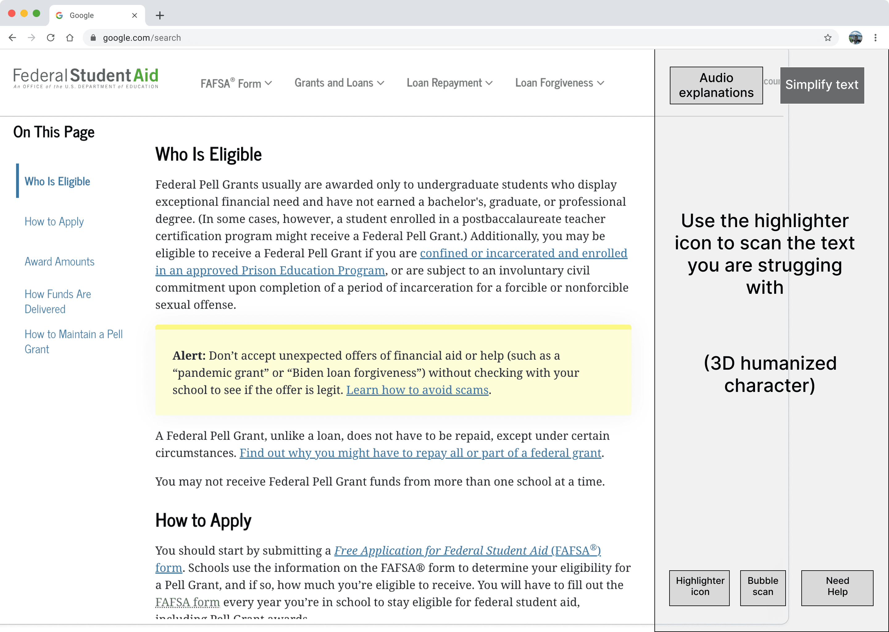 Simplified Text Display – Rewrites complex text in easy-to-understand language.